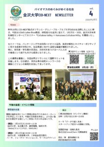 金沢大学エグゼクティブ・コーディネーター兼COI-NEXTアドバイザーのフランスGrenoble Alpes University のRedouaneBorsali教授をお招きし、講演会を開催しました。42名の学生が参加 […]